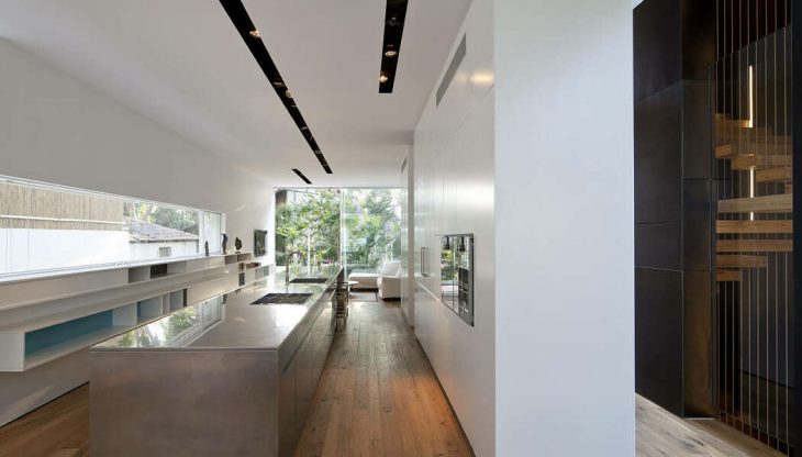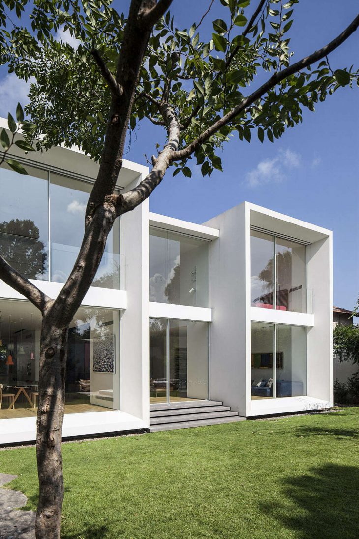 From the architects: The project stands by a huge beautiful ficus boulevard. From the start it was obvious to us that we want it to be a main theme in our design. In order to insert the outdoor to the indoor we designed the long tubes. Transparent edges, sealed on the sides. On one end the garden, and on the other end the ficus. Besides the house, beyond the sealed sides, the neighbors. Almost invisible while in the house. From every point inside the tube, nature reveals. village within the city.