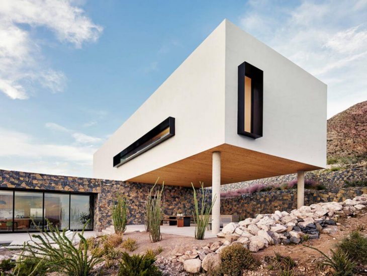 From the architects: The Franklin Mountains extend into the north end of El Paso like a peninsula of rocky wilderness into the urban landscape of the city, rising 2500 feet above the Rio Grande river valley. The home site is set in the foothills of the Franklins 800 feet above the city perched just above a small canyon with unobstructed views of downtown El Paso and Juarez to the south.