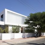Near the top of the site there is an abandoned quartz mine. The angular quartz crystals that scatter the eastern part of the site – beautiful, foreign objects among the weathered grey stones and lechuguilla – became an inspiration for the massing of the home. A traditional white lime stucco volume houses the bedrooms and private area of the family and balances on a stereotomic mass rendered in local basalt grey stone using the rubble wall style visible all around town that closely matches the surrounding environment and is so of the place that from a distance the lower floors nearly disappear and the white bedroom mass appears to float in the landscape.