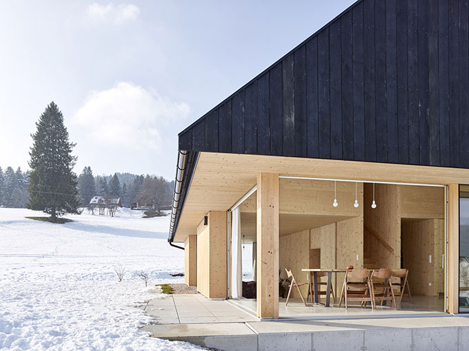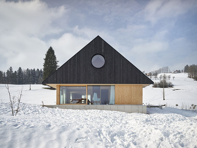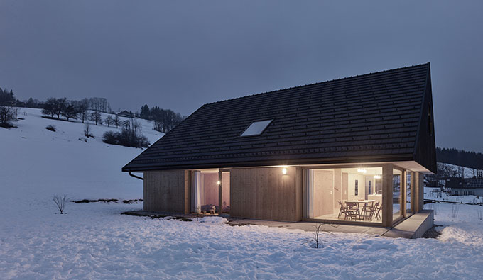 Designed by mia2/Architektur, Haus mit GIEBEL is located on a slope site on the edge of a small settlement with a beautiful view on Pyhrn-Priel-Region, an alpine region in Upper Austria. The private builders wanted to create a house that harmoniouslymatches the surroundings and brings the outdoors inside. The young family requested a calm, clear architecture made of wood, concrete and glass. Take a look at the complete story after the jump.