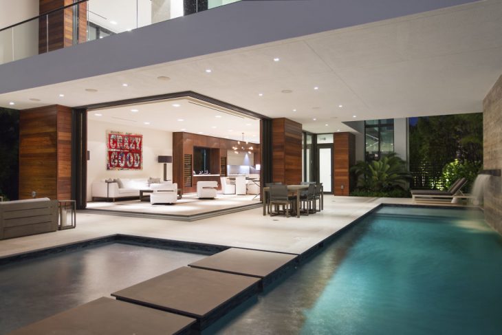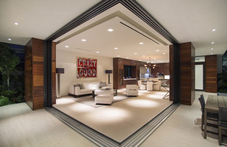 Besides the home’s stunning design, the architects at Choeff Levy Fischman also designed the home to include several green features to help protect the home against Miami’s various natural elements. One of the features is a full, onsite rainwater retention system. The architects designed a combination of swales, subsoil, and underground exfiltration trenches where water is cleaned, filtered and maintained on the property. The storm water is then naturally filtered and redirected to the City storm sewer. They also incorporated insulated glazing utilizing low-e film to minimize solar heat gain and glare. This green method also reduces energy impact costs, and a high Albedo roof membrane was installed to minimize heat and cooling loads.