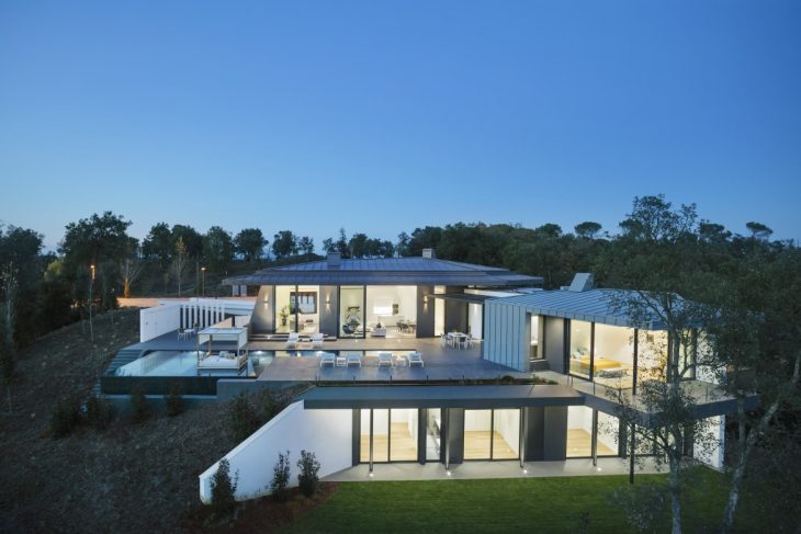 From the architects: Studio RHE took the unique features of the site to design a one-off residence that both exploits its location overlooking the famous Spanish Open course, and blends seamlessly with the hillside landscape. The architects used the unique features that characterise the hillside site, including the natural forest, undulating topography and historic agricultural walls, as defining features of the villa.