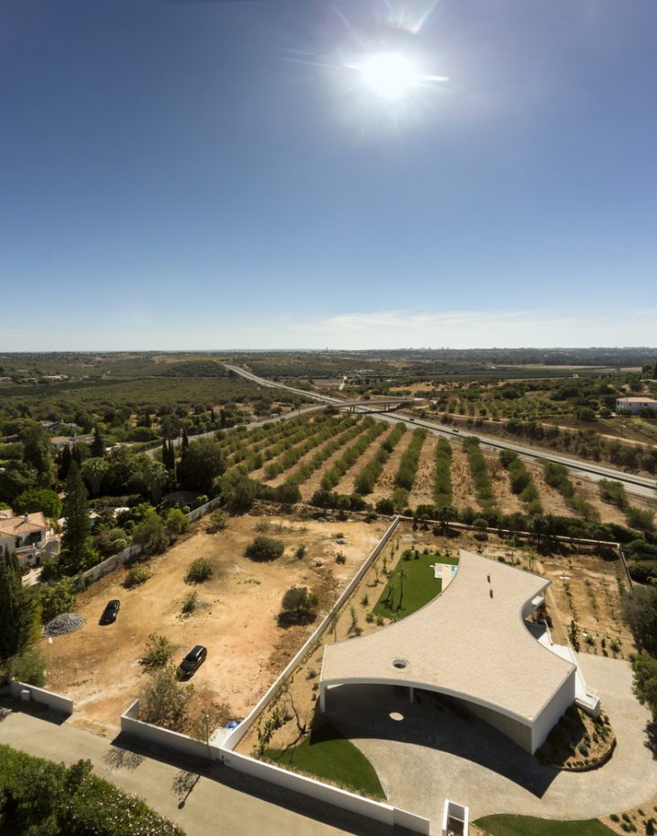 Located in the south of Portugal, in an area that serves as a transition between the Sea and the land. It is located in the village of Alcalar, a few kilometers from Portimão, where 5000 years ago was settled an important Prehistoric community. Based on the importance of the location of the land and its relationship with history, we decided that the image of the house would have to seek the organic relations that refer to the Monument that appears in the history of the area.