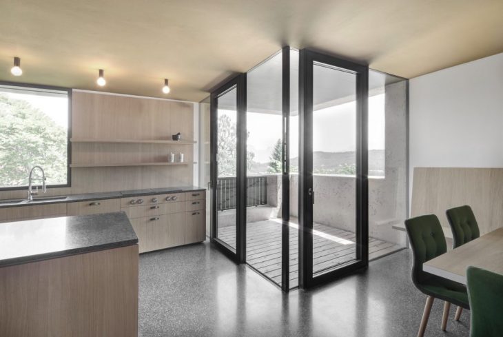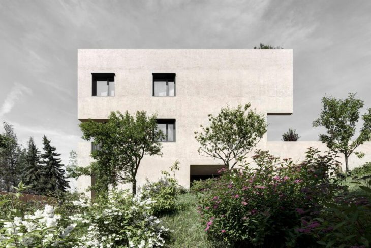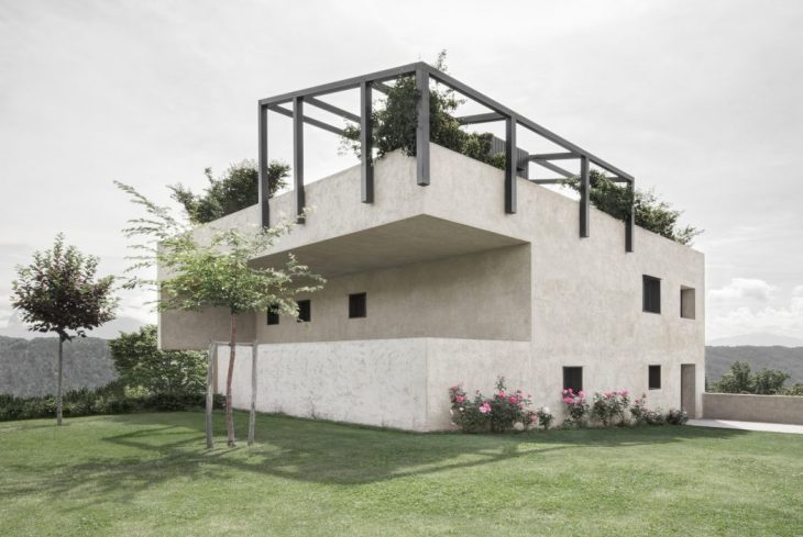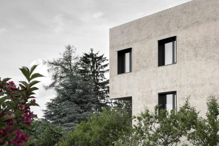 Bergmeisterwolf Architekten designed this contemporary two-storey residence situated in Soprabolzano, Italy, in 2014. The residence is placed close to the angle of the existing holzner park hotel building and allows the dialogue between existing and new. The introverted personality is accentuated by its shape and materials used. Take a look at the complete story below.