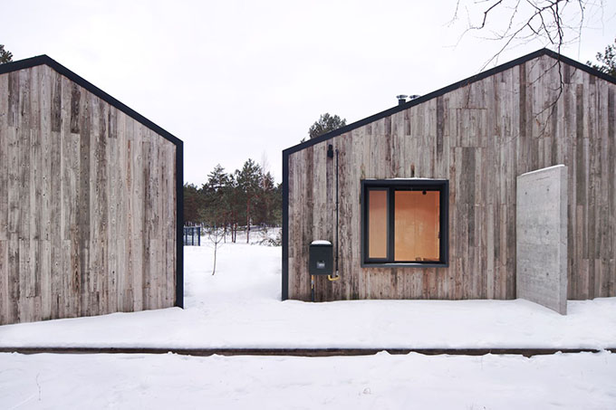 From the architects: A small private house is located in a picturesque place about 30 km from Riga. The land plot is on the boarder of the forest and is located near the Gulf of Riga. A separate position of the buildings (house and garage) on the site is due to the fact that they were erected on the previously existing foundations. The buildings are connected by a terrace.