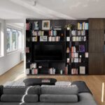 Some rooms have entrances on the zero level, with relation to the street. Common areas open to the landscape, the inner courtyard, and two entrances on the -1 floor, in connection to the ground at the lowest level. There are two entrances: one through the courtyard and one through the living room.