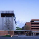 The architectural design strategically situates the building, partially nestled within the ground, to curate a diverse range of perspectives and manipulate the garden’s verticality.