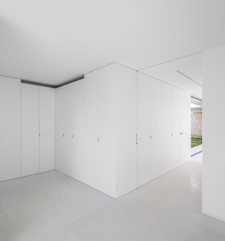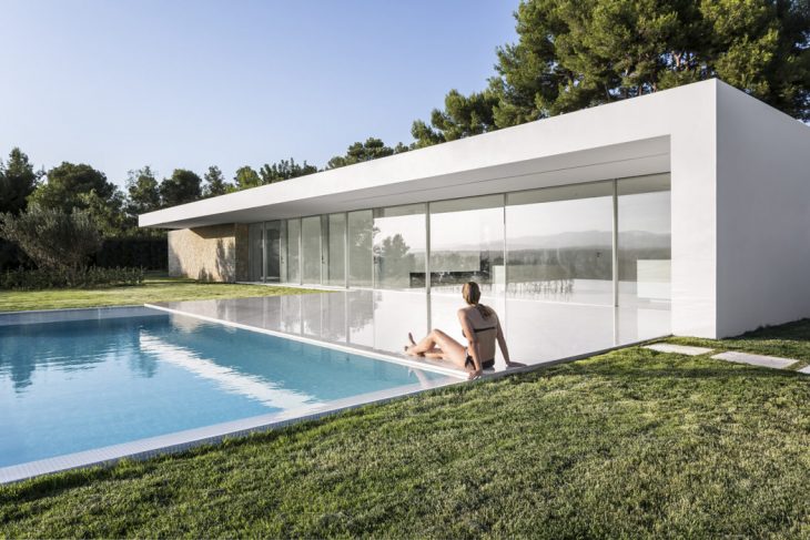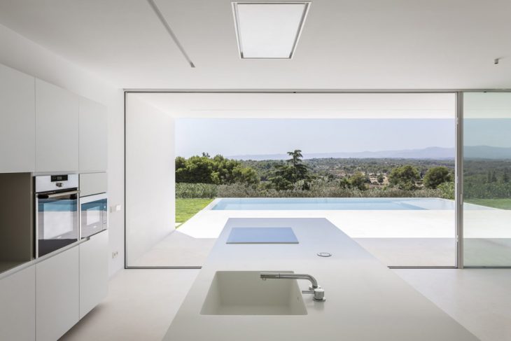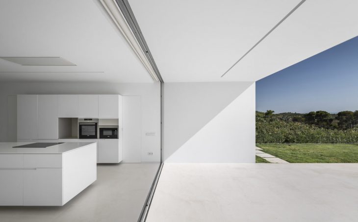 Gallardo Llopis Arquitectos designed this stunning modern residence located in Valencia, Spain, in 2016. The object respects the modulation of the existing terraces and olive trees functioning as a lookout over them. The house ensures a good illumination throughout the whole day. It allows the sunrise to be observed from the left end of the house, and the sunset from the right. Take a look at the complete story after the jump.