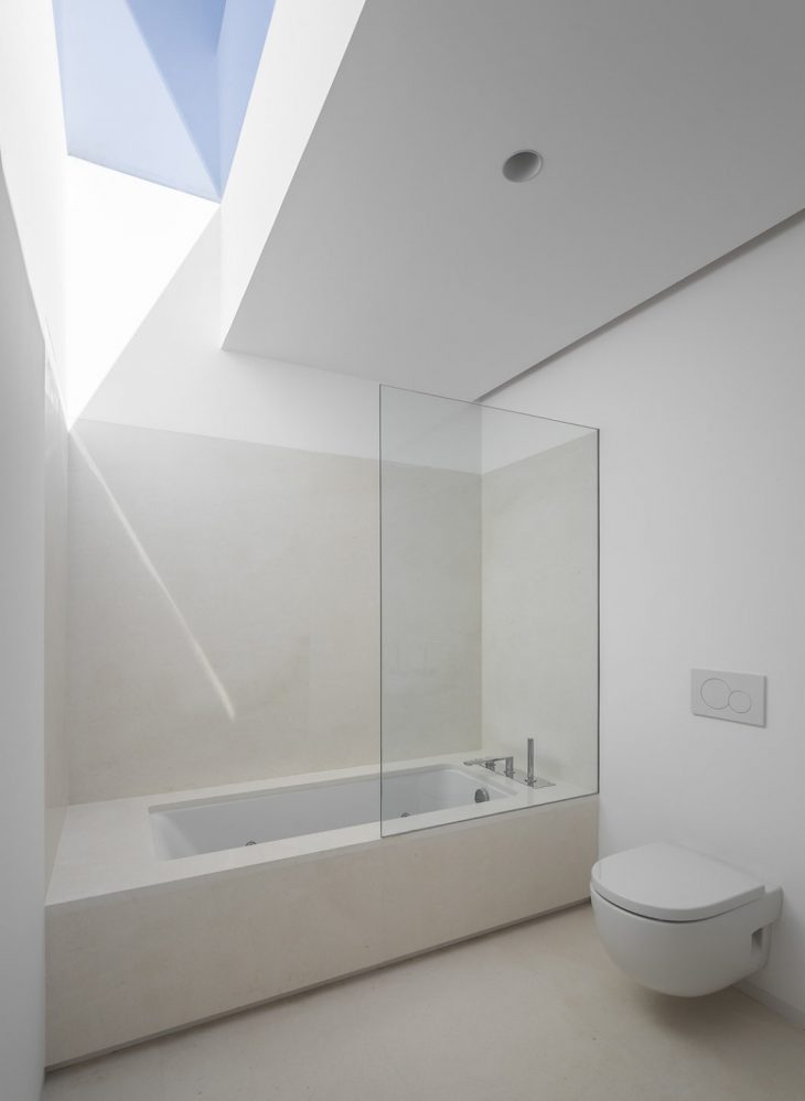 Inside, the living-dining room and kitchen function as a diaphanous centerpiece, connecting with the corridor, endowed with space and quality lighting thanks to the transparent side panel that opens to a garden under the skylight. The children’s and guest rooms are facing the southeast, giving them a view of the landscape and providing direct access to the terrace and swimming pool. The master bedroom is the piece that relishes in a unique orientation, southwest, guaranteeing its indispensable privacy. An eave allows to extend beyond the carpentry the interior space and focus the views towards a private area of the garden, with the dominant presence of an old olive tree, a garden within the room.