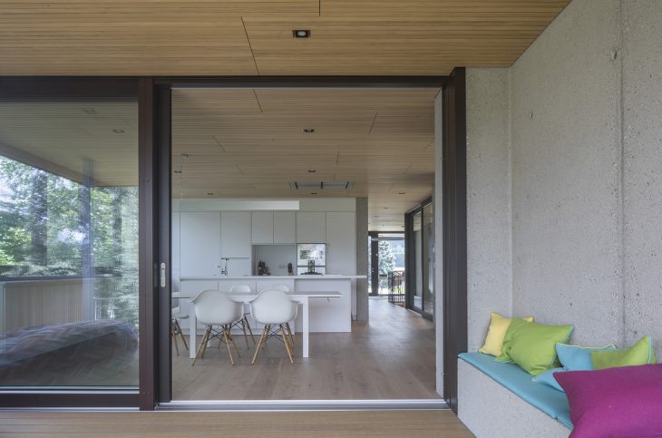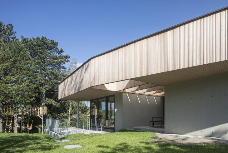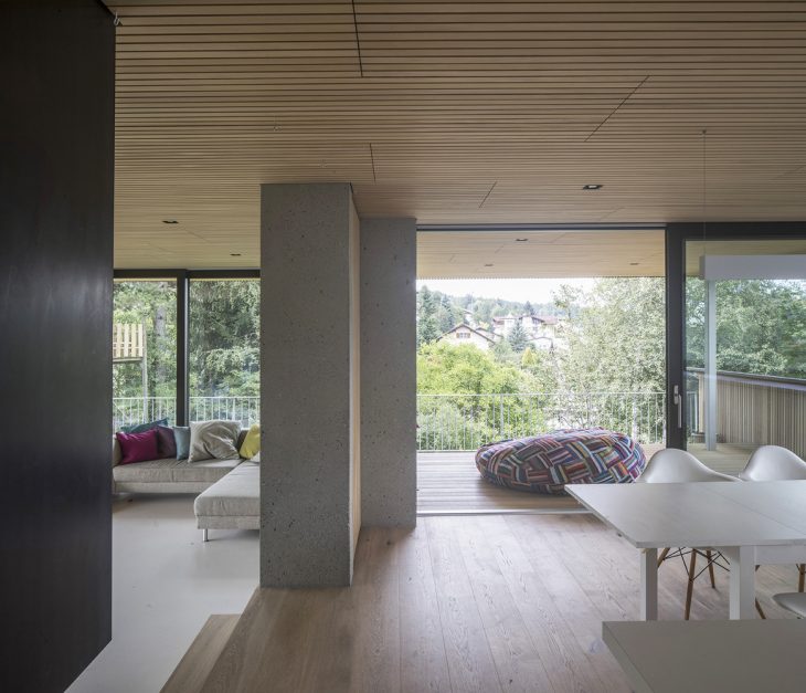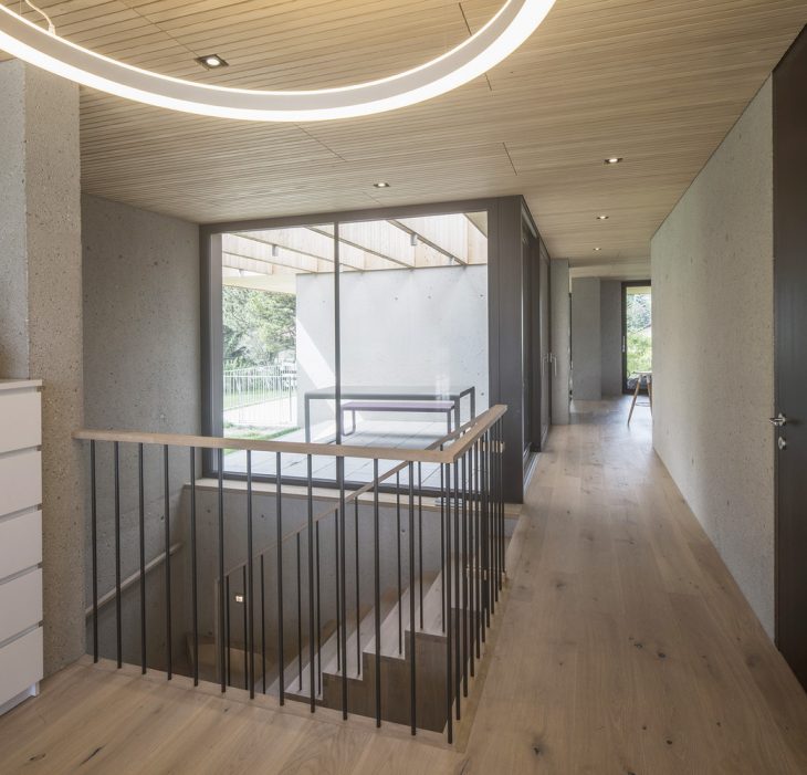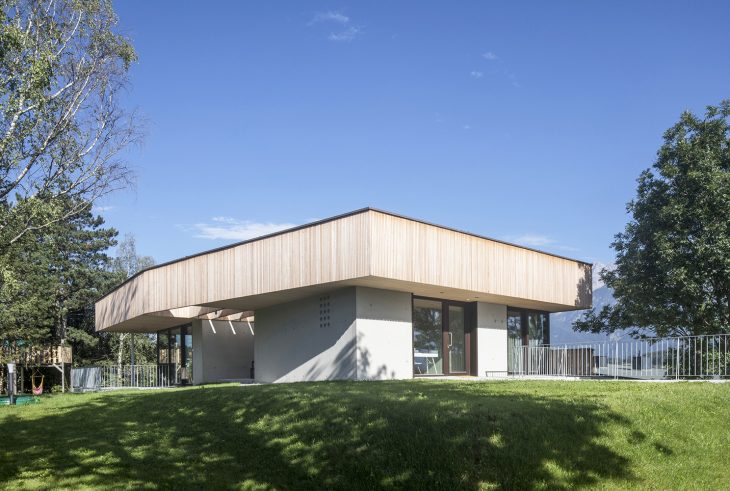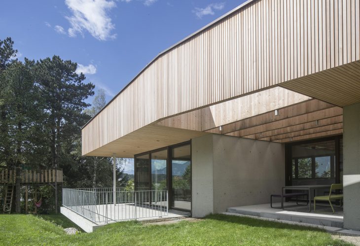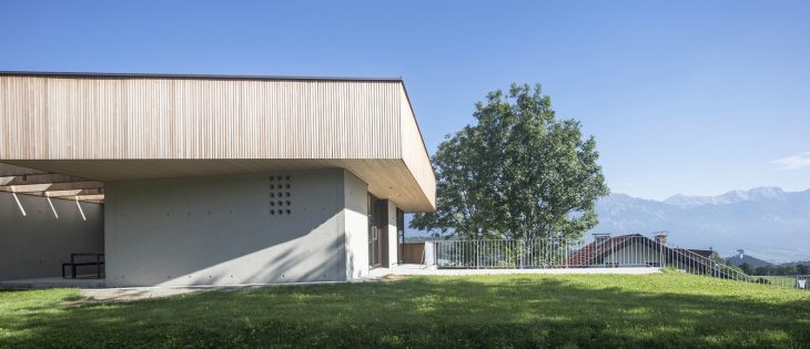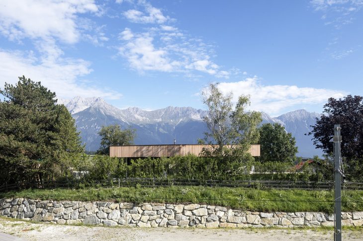From the architects: Haus Welser is located on a tree-lined hill in the heart of Mutters – a small town perched high above Innsbruck (Tirol, Austria). The site’s special location offers a clear view over the neighbouring properties to the “Nordkette”, or northern chain of mountains in the Karwendel Range. The vast Wipptal Valley opens up to the south, towards the Brenner Pass, allowing extensive sunshine all day.
