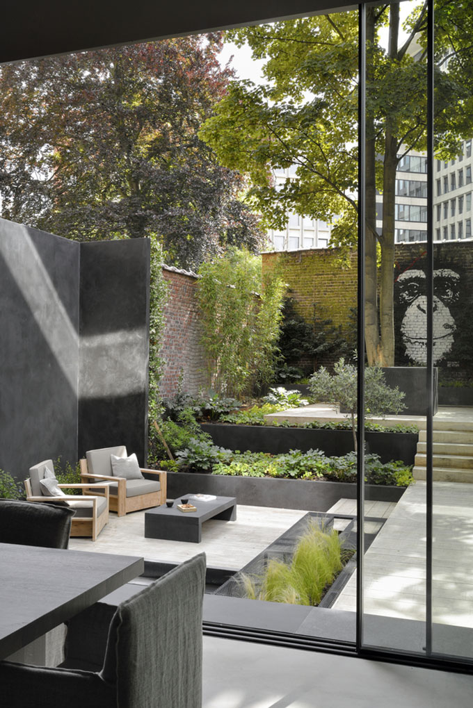 The project consisted in uniting the 2 houses. The front façade, a beautiful 19th century brick façade belonging to a row of similar houses was restored and was essentially left untouched. The big façade however was opened generously to embrace the garden facing south.