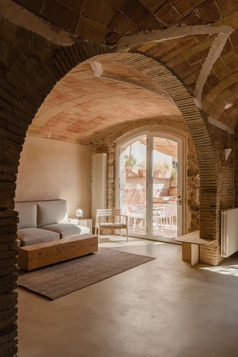 The ground floor defines the spatial character of the house through two Catalan vaults that remain intact. These vaulted structures hold the memory of the workshop that occupied the space for decades and guide the overall organization of the project. Rather than altering these elements, the design positions them as the central feature around which the new program develops.