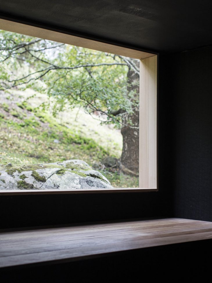 Walls, floors and ceilings in the main space are treated uniformly, in white, to create a simple light interior. The entry, kitchen and bathroom spaces are designed to be deliberately, theatrically small and are finished in black, in contrast to the larger white volume. The house is designed to be intensely private. Given the cool climate, the house has two essential strategies – to hold the heat and find the light. Apertures are purposefully positioned to create pure window types opening to either garden, sky or shadow. The Little Big House is clad in vertical unfinished timber continuing traditions of local vernacular building in Southern Tasmania. The front door entry is set back and this timber remains golden in contrast to the remaining façade which has silvered with time. Each piece of timber is finished with a handmade z flashing to ensure the longevity of the façade.