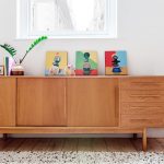The kitchen area makes use of the original parquetry flooring of the previous home which in itself had already been recycled from a ballroom the clients used to frequent before it closed down. The finish was intentionally kept relatively rough and original to express the embodied memory of the material. Complimenting that was a semi-industrial looking kitchen with exposed steel posts and timber panelled ceiling. Purple glass splash backs further animate and compliment the vintage designer furnishings.