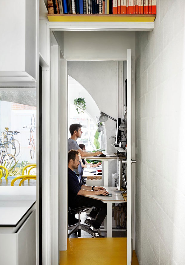 Austin Maynard Architects from Australia have shaped their own storefront workspace into a cozy, modern and sun-filled work environment, adequately titling the project The Mental Health House / My-House. The award winning Melbourne based architects are well known for their unique approach, and such is their working space. At the same time this is also a home of Andrew Maynard, one of the foud