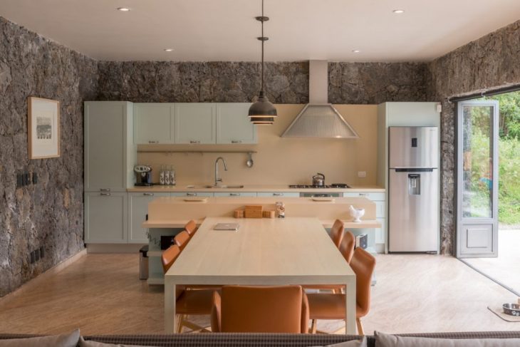 The existence of two volumes built on this house have support functions; the volcanic stone volume is where the common areas like the dining room, half bathroom, laundry and laundry dying annex are located. It is separated from the mud volume, where you can find the three bedrooms, each one with its own bathroom and walk in closet.