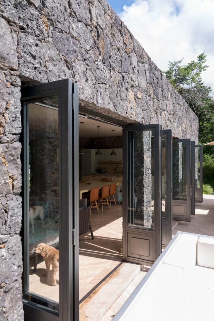 The endemic vegetation recovered from the area integrates the construction with its surroundings, thus it is more than a simple imposition making the house part of the whole landscape. To achieve this concept, local materials where used for the execution and finishing of the construction such as volcanic stone on the walls that seem to be a natural complement.