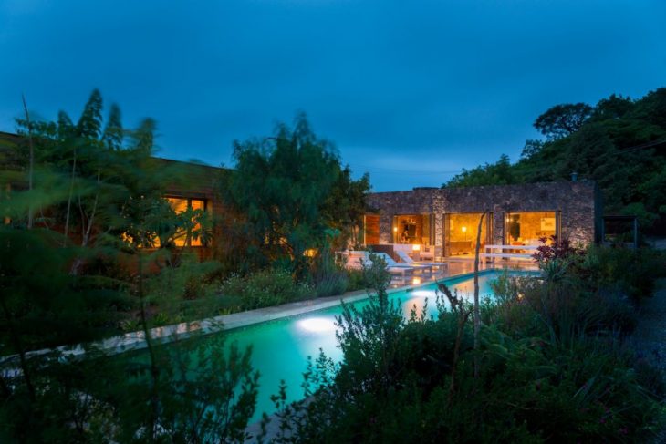 To unify this concept there is a magnificent bridge-terrace built on Travertine marble that creates a unique union with visual and geometrical relation to a marble pool. This material and its placement 50cm away from the land make this platform something both intentional and exceptional that embraces the volumes that “belong” to the earth.