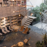 The designer aimed to build a large space in which people can have the feelings of natural light in 3-D way, with shadow through the narrow chinks, and natural air ventilation through the big void.