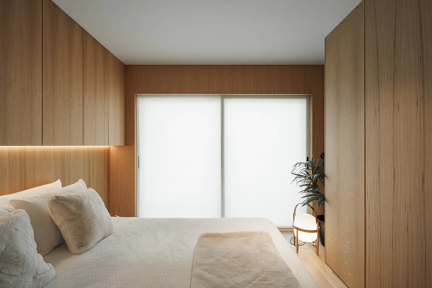 The bedroom is envisioned as a tranquil, self-contained retreat. Featuring an en-suite bathroom and a generous wardrobe, it offers comfort and privacy in an atmosphere defined by balance and harmony. The design prioritizes the client’s need for rest and restoration, transforming the bedroom into a personal haven that responds to the demands of contemporary life.
