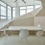 These routes through the building are defined by specific material palettes with floors being colour matched according to level. On the ground floor is brick paving which extends into a courtyard outside, softening the threshold between internal and external spaces.