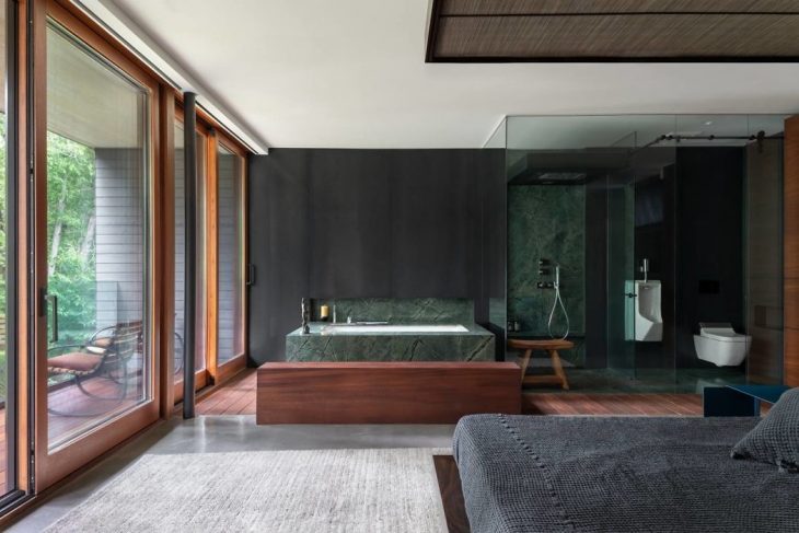 The master ensuite, a spa-like nook is located within the master bedroom; a modern approach with a very open, yet natural feeling.