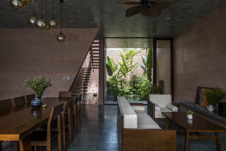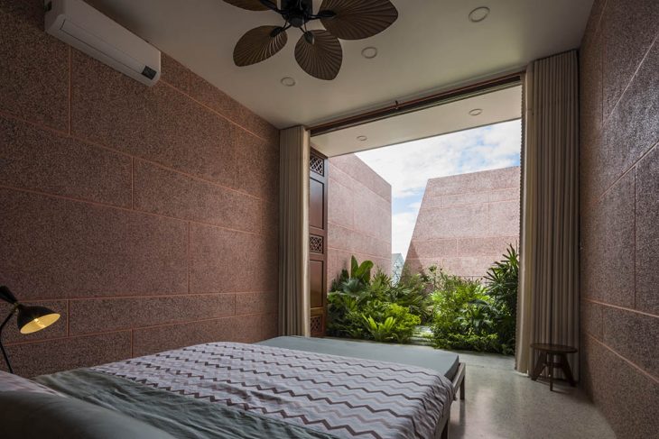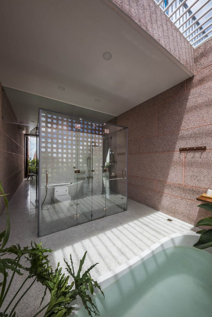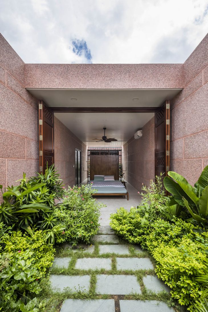 23o5Studio designed this stunning pink residence in Long Xuyên, Vietnam. Serenity, Silence and Intimacy are some of the key considerations during the design process. Discover more after the jump.