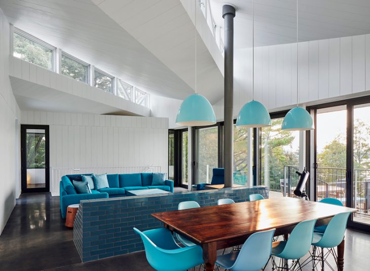 The Sky House designed by Coryn Kempster & Julia Jamrozik is set in Ontario, Canada, on the edge of Stoney Lake, providing a modern waterside retreat and consists of two volumes stacked one on top of the another. Take a look at the complete story after the jump.