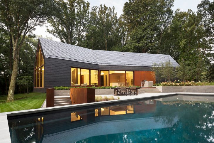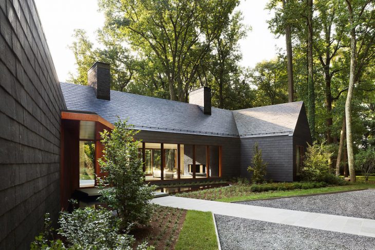 From the architects: Situated on 3 acres and surrounded by Maryland Environmental Trust land, the Slate House is a contemporary retreat that respects the nature and legacy of the vast and densely wooded site. The new 7,000-square foot building replaces a late 60’s, ranch-style house that was destroyed by fire.