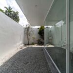 Two blocks, one private and the other social, were made for this. A semi-covered walkway connects them, and it is framed by side patios that are bordered by vegetation. Three en-suite bedrooms with separate entrances make up the private block.