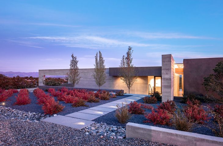 Specht Architects‘ founder Scott Specht designed the Sundial House located in Santa Fe. Specht orients recessed New Mexico house towards the dessert with sun casted shadow patterns on interior walls. Take a look at the complete story after the jump.
