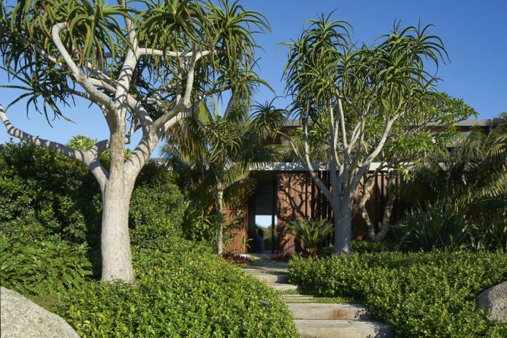 With its long edge running parallel to the public domain, privacy was a key issue on both levels of the site. Bedrooms are positioned on the ocean side whilst the street façade is clad with solid recycled timbers that deliberately open up where light and ventilation are required whilst maintaining privacy. A generous, lush garden along the street highlights the architecture within its dense foliage, and both garden and building are embraced by the public.