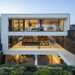 A central challenge of the project was unifying three distinct construction periods. The architects chose not to create stark contrasts between the original and new additions but instead developed a design language that draws inspiration from the existing structure. This approach establishes a cohesive yet distinctly modern form that respects the house’s architectural roots.