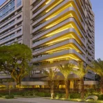 The interior layout encourages connection, with the kitchen, dining room, and living space flowing together to encourage family interaction. Upstairs, the bedrooms are accompanied by two bathrooms, a study, a guest room, and a small gym. A large upper terrace extends over the northern passage, offering panoramic views of the surroundings.