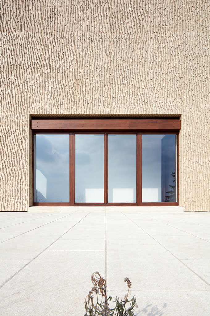 Cone-shaped exterior walls, rough combed stucco and oak windows were characteristic to the unique exterior design. Unfortunately, the stucco was badly damaged. Despite all our efforts it was unrepairable, and we had to replace it. Fortunately enough, we were able to find a technical and aesthetic solution that was almost identical to the original, including colour and structure. Before the actual application of the finish, we performed numerous test samplings directly on the façade structure.
