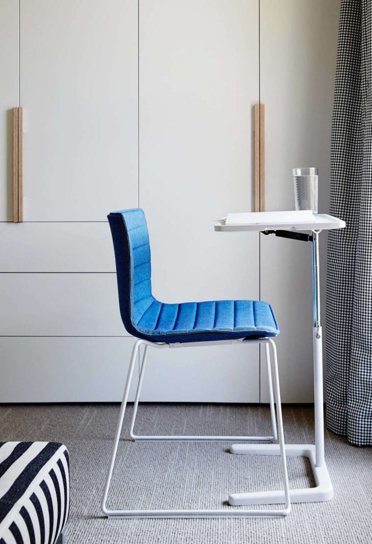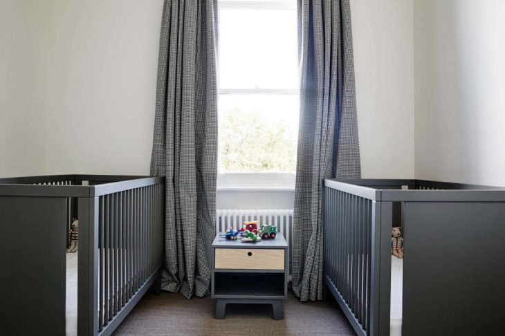 Our interior design of the compact spaces synchronizes perfectly with the contemporary and period architecture and enhances and maximises flow and flexibility. Selections were made to last, designed to endure and stay appealing far into the future. Quality of design and manufacture was key. Textiles combine natural and synthetic fibres for high wear and durability. Pattern and colour were selected with purpose and meaning in mind. The clients were open to an alternative style of dining & working at home. The dining table was designed to seat the children on high chairs for every day. We designed an additional table top, easily stored for regular entertaining. The ‘study’ is the Flexible NesTable by Vitra, which offers exactly that, a flexible desk solution. Collapsible for storage, the client is able to move the ‘office’ around the house, working in to co-ordinate with a young family’s movement during a day.