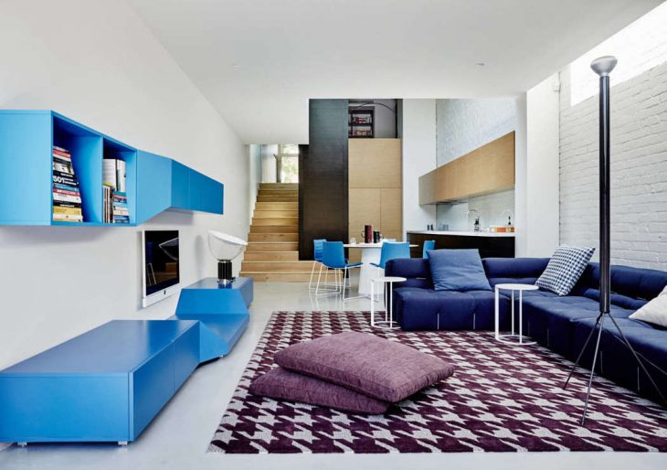 Nexus Designs streamlined a Victorian terrace into a machine for modern family living. Every millimetre was considered meticulously, resulting in a vast and spacious ambience. A portable work space, play space, toy storage, and changeable dining space: all designed to be highly functional with intense colour and repetition of pattern.