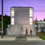 The project has the goal of fitting the functional program onto a small site that is located in the central business district of the city. The completed project by Tsou Arquitectos now has the usable area of 230 square meters. The numerous spaces are organized vertically and evolve around a central stairway, with the rooms being split up among the half levels of the building. The intervention is brought together by the staircase, which allows the guardrail to unfurl like a piece of origami.