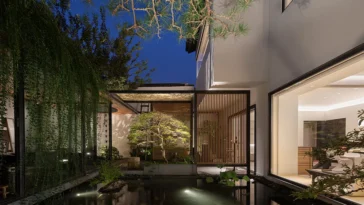 The communal spaces are connected visually, which enables a number of distinct parallel experiences to be had in adjacent and independent rooms. The huge window that extends out onto the balcony of the living room provides natural light to the productive looking office that is located in the semi-basement. The private areas, which are situated on the upper floors, take use of a design that offers complete discretion.