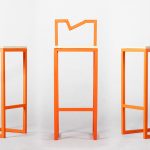 The composition is using the contrast of two main materials / colours: white blocks and dark teak timber.