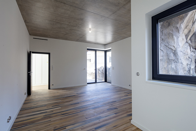 Living areas have openings cut out of the rock in search of light: all the windows have specific frames depending on their function as bedrooms or living areas. They are an integral part of the rock, like paintings, they create a dialog between the natural and the built.