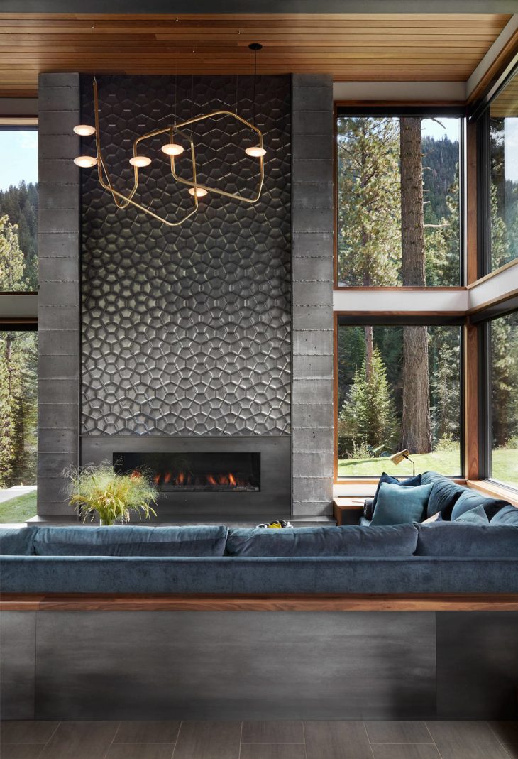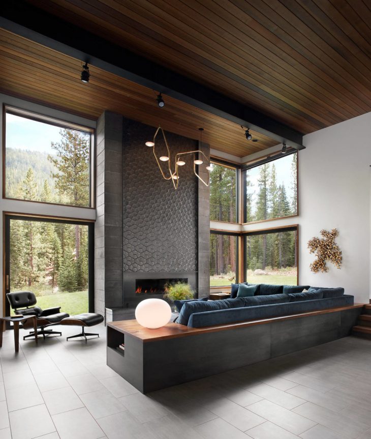 Hills & Grant designed this stunning mountain modern modular home located in Truckee, California, in 2017. The house boasts a heavy steel exterior with linear roof lines, glass portal hallways, a floating staircase, and walnut casework throughout. The architects created an open airy living area with private gathering spaces. Take a look at the complete story after the jump.