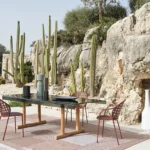 The dwelling’s layout is situated on a single ground floor, with its spaces arranged around multiple patios. Glazed facades in the main social areas and patios improve the visual connection between indoors and outdoors. Each courtyard serves a unique function, welcoming guests, providing rest, or facilitating social gatherings.