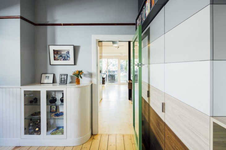 The clients are a couple with two young children. He’s a Journalist, and she’s an Architect (Principle of a big commercial practice, doesn’t do houses, ‘too busy anyway, it would never get done…’) They don’t want, or need, more space than the existing Californian Bungalow provides, but they would like it to perform better; to open out the kitchen to the dining area so that the kids can do their homework at a large central bench, they do need more storage space, better lighting (and insulation), to fix the cracking lath and plaster walls and ceilings, an upgrade to the existing bathroom and laundry, and a new ensuite to the Master Bed.