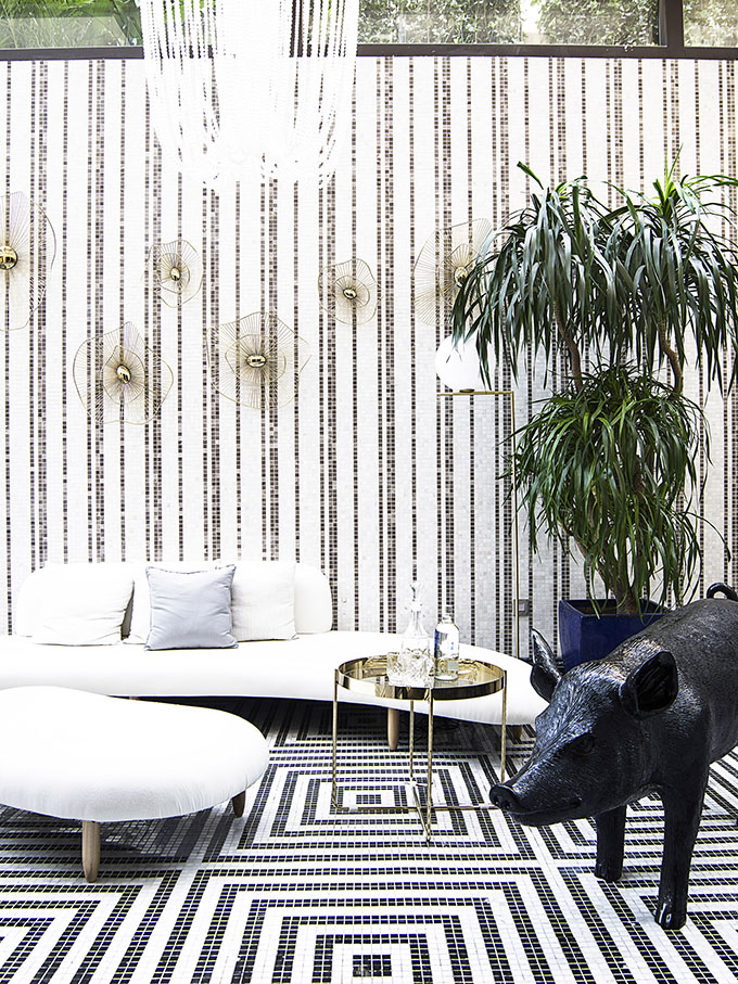 The hexagonal honeycomb marble of the floor and walls contains a meaning of “home”. In the meanwhile, green plants surrounding add vitality and poetry to the space, and make people feel close to nature without going outside. To bring in more sunlight, the lobby on the first floor has been extended out, another door has been added to the dining room, and size of parts of windows in the living room has been appropriately enlarged. Hence the rays of light dance in the space and inspire the spiritual world of the dweller.