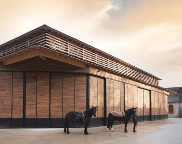 K ARCHITECTURES introduces a new equestrian performance hall within the historic grounds of the Hennebont National Stud Farm, positioning the project directly inside the Cour du Puits. The building rises seventeen meters above the courtyard, establishing a strong vertical presence that reshapes the existing skyline while maintaining a clear relationship with the surrounding Napoleonic stables. […] More